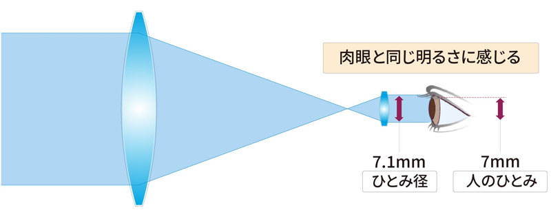 この「明るさ」は、「ひとみ径」という数値で比較することも可能です。