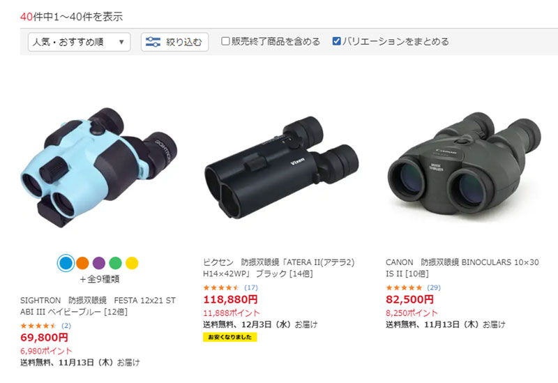 - 価格が非常に高い:やっぱり高い!同等倍率の通常の双眼鏡と比べ、価格は数倍から十数倍になることも。初期投資が大きい。
